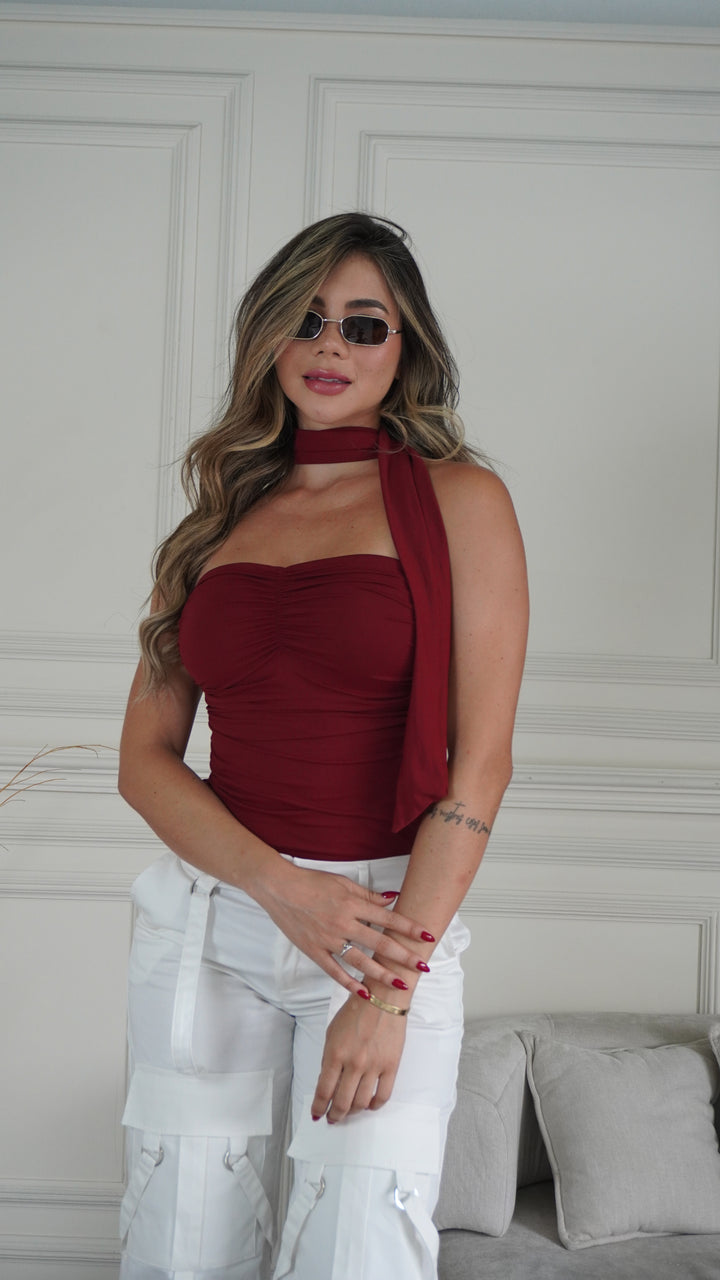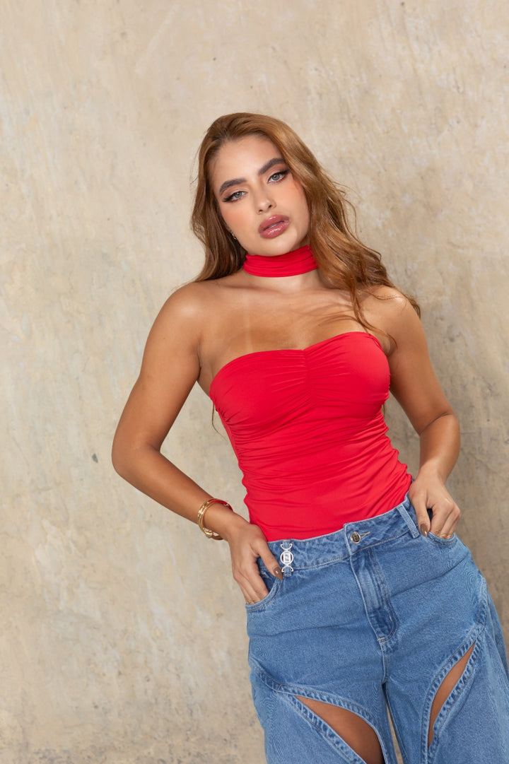 Diseño: Body drapeado con diseño tipo chocker