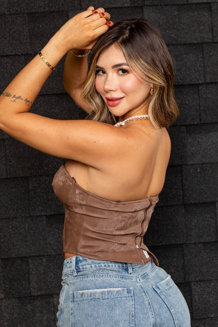 Este expreso es la pieza perfecta para crear un look moderno, atrevido y estilizado. Su diseño sin tirantes realza los hombros y el escote, mientras que el cierre en la parte de atrás permite un ajuste firme y limpio que moldea la figura sin perder comodidad.