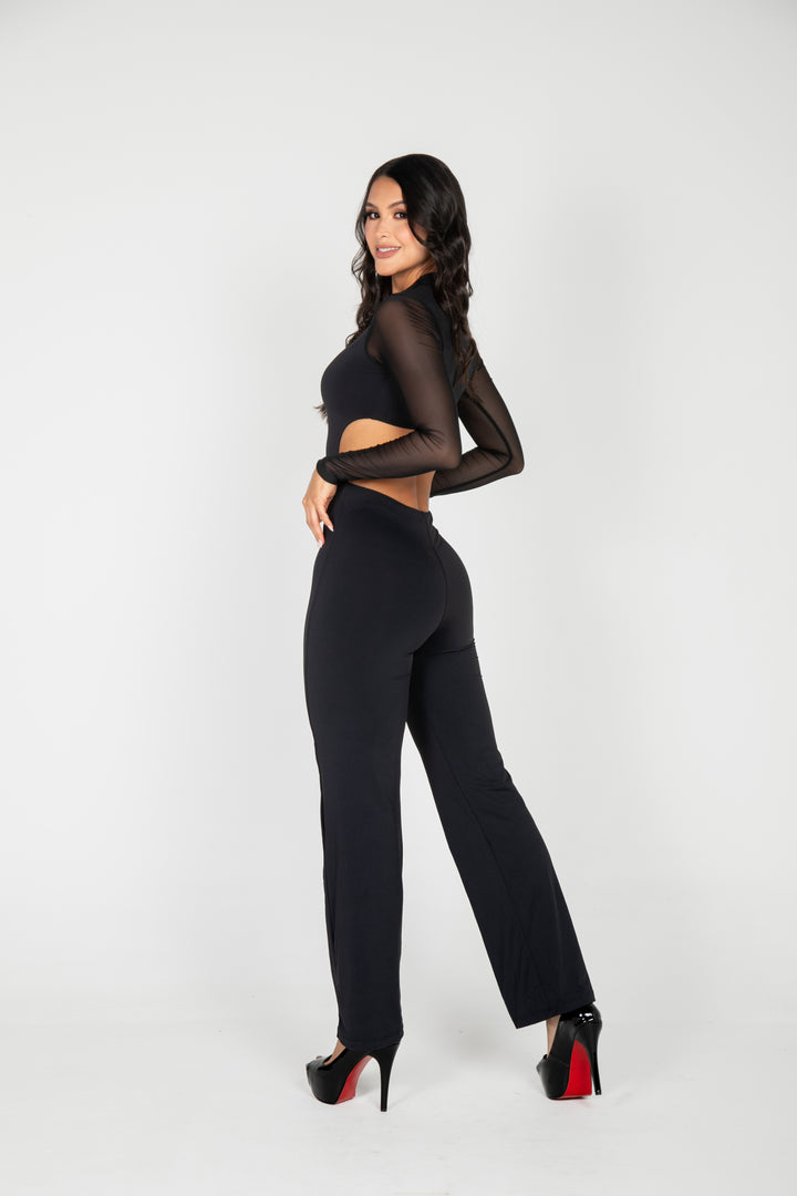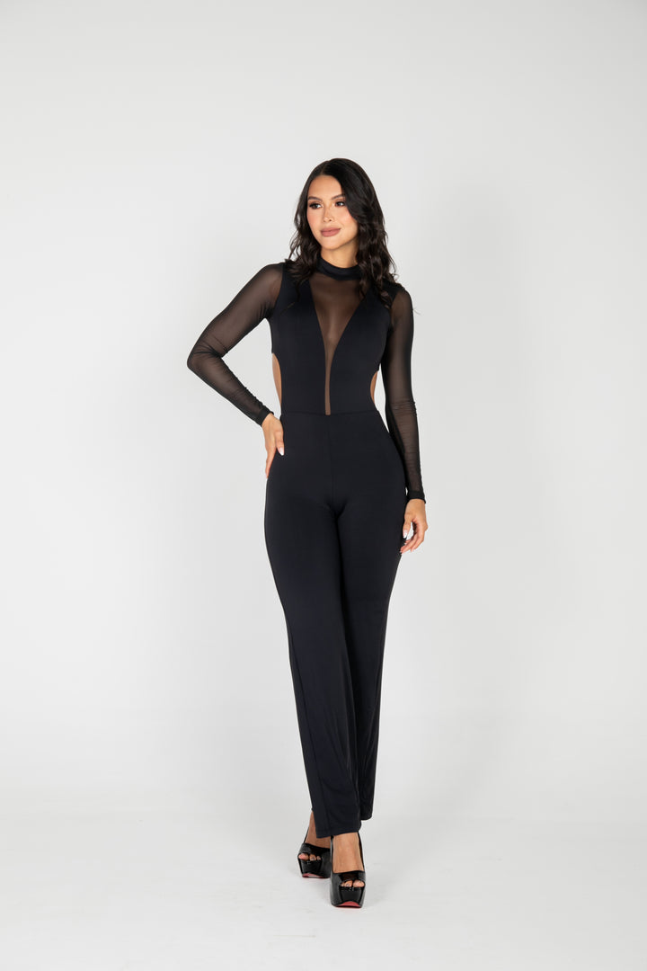 Este enterizo con mangas de malla y escote sutil te da la elegancia que te hace ver poderosa y la sensualidad que te hace inolvidable.