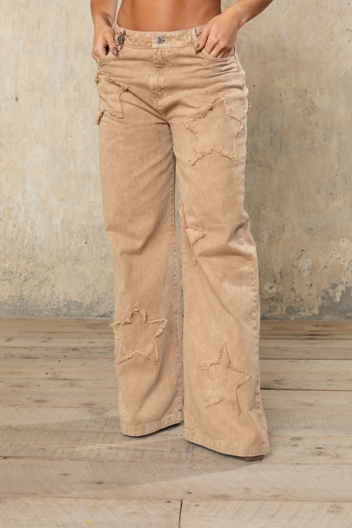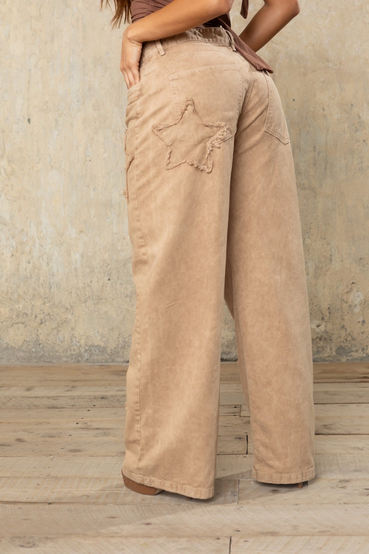 Su silueta amplia tipo amplia le da ese movimiento lindo al caminar y el detalle de estrellas deshiladas lo convierte en ese jean que NO se parece a ninguno.