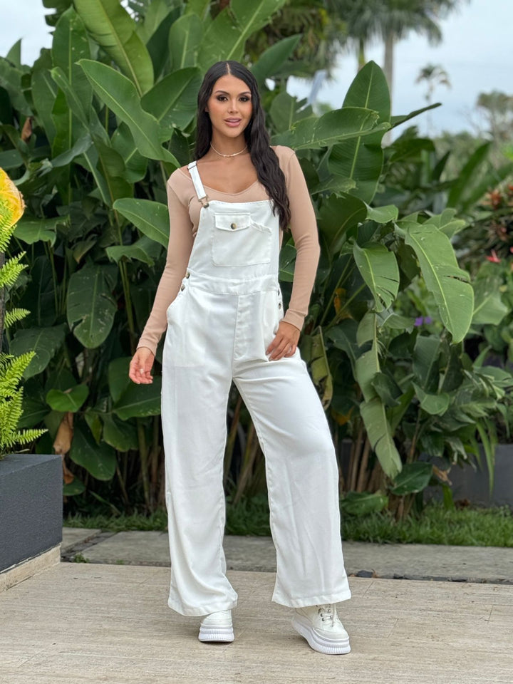 Overol suelto, en tela, prenda versátil que puede adaptarse a diferentes estilos y ocasiones ¡Experimenta y diviértete creando diferentes looks con esta prenda!