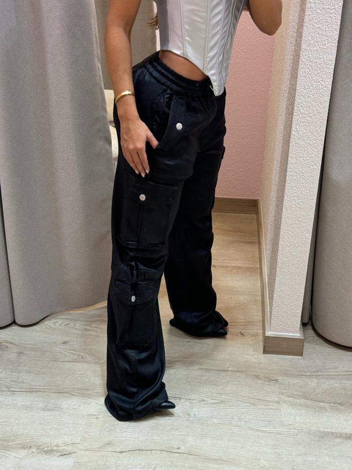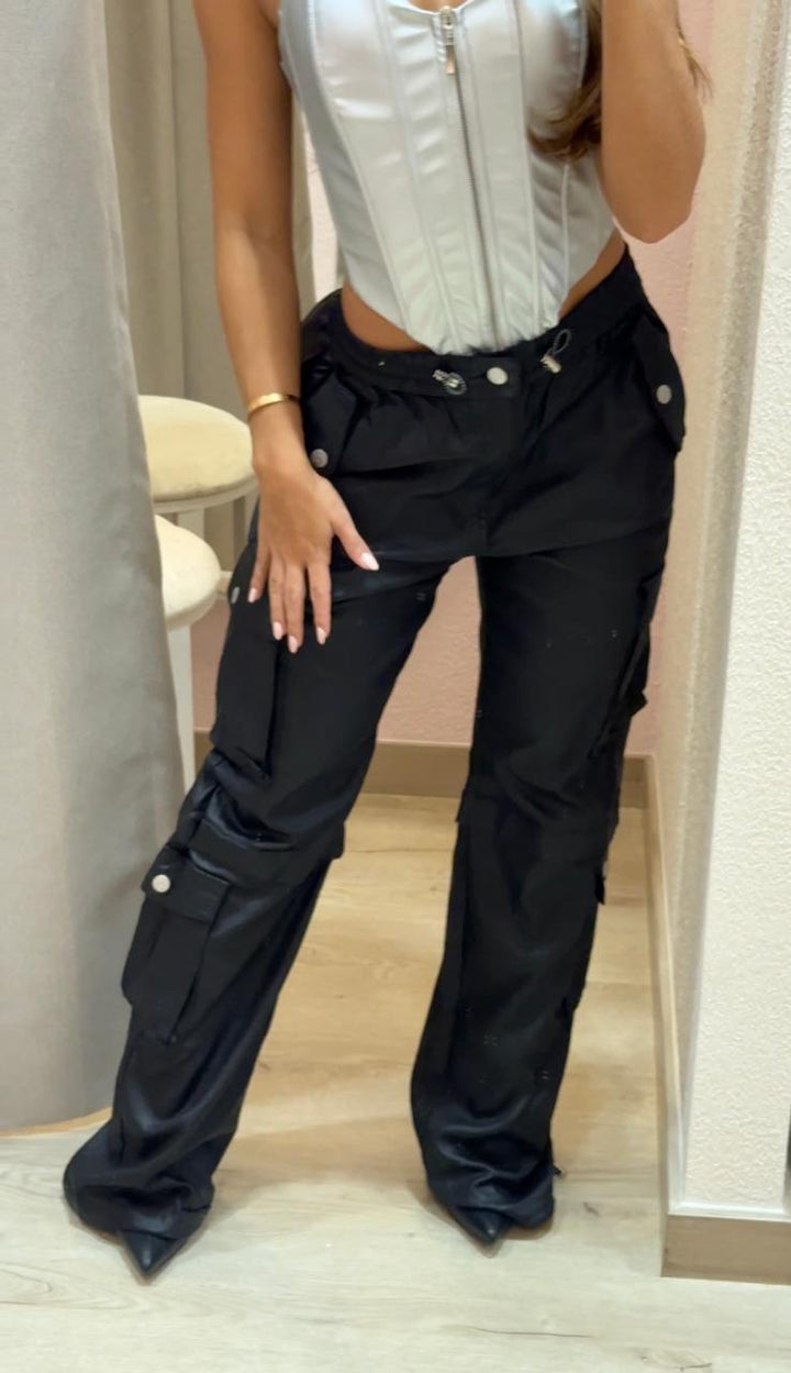 Diseño: Pantalón bota recta tipo cargo, bolsillos a sus laterales.