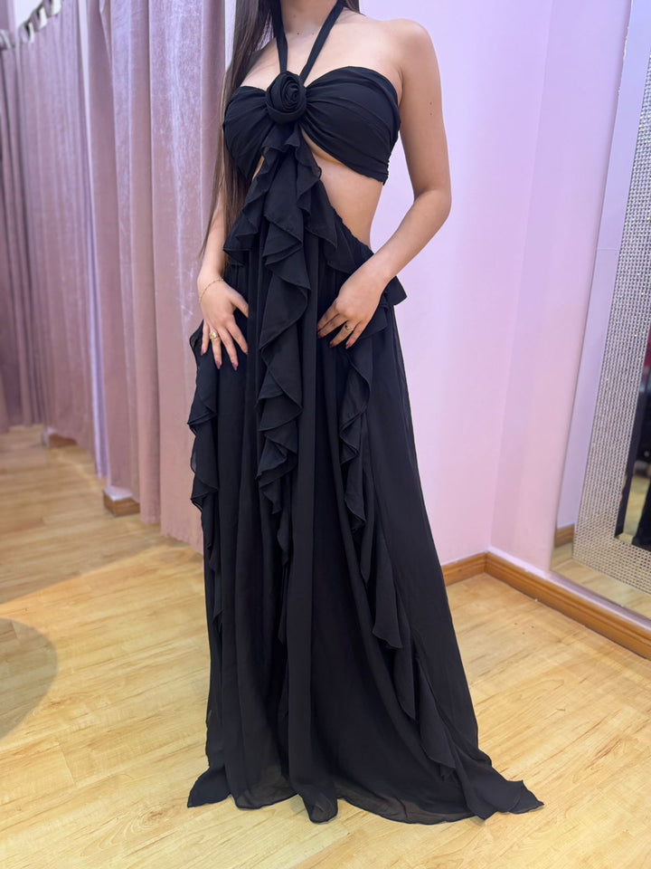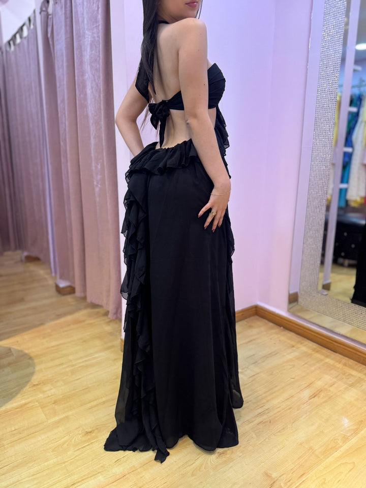 Un vestido de gala en seda que fluye con cada paso. Su brillo sutil, su caída perfecta y su diseño atemporal lo convierten en una pieza pensada para robar miradas sin esfuerzo.